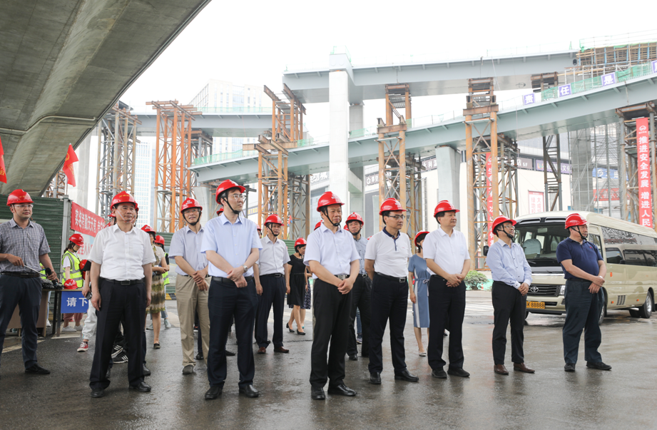 在潤(rùn)揚(yáng)路--江陽(yáng)路互通工程現(xiàn)場(chǎng),夏心忠副主任介紹了國(guó)資委對(duì)城控集團(tuán)在改革發(fā)展方面指導(dǎo)支持的具體做法。葉善祥介紹了城控集團(tuán)主體信用等級(jí)提升工作情況及潤(rùn)揚(yáng)路快速化改造(江陽(yáng)路互通立交)工程項(xiàng)目進(jìn)度、施工計(jì)劃、難點(diǎn)問(wèn)題。