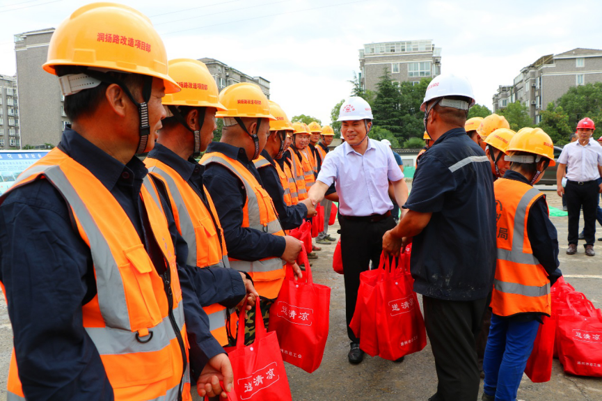 在慰問現(xiàn)場,韓士軍一行詳細了解了潤揚路快速化改造工程項目建設(shè)進展情況,為一線人員發(fā)放了防暑降溫慰問品,叮囑他們高溫作業(yè)一定要在保證工程質(zhì)量和進度的同時加強安全生產(chǎn)。他要求施工單位合理安排作業(yè)時間,嚴(yán)格落實現(xiàn)場保護措施,切實做好防暑降溫工作,時刻把人員健康和安全生產(chǎn)放在第一位,有條不紊推進各階段目標(biāo)任務(wù)。