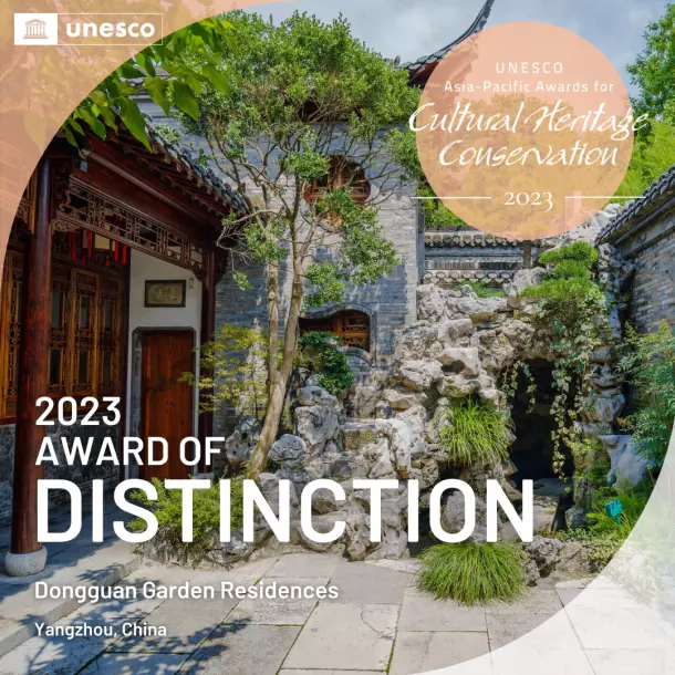 東關(guān)歷史文化街區(qū)位于揚(yáng)州明清古城東北隅,東起古運(yùn)河,西至國(guó)慶路,南臨文昌中路,北達(dá)鹽阜東路,面積3.4平方公里,是城內(nèi)迄今保存最為完整、規(guī)模最大的歷史文化街區(qū)。街區(qū)沿線歷史遺存薈萃,其中個(gè)園、汪氏小苑、唐宋東門遺址、逸圃為國(guó)家級(jí)文物保護(hù)單位,曹起溍故居、壺園、劉文淇故居、丁姓鹽商住宅等為市級(jí)文物保護(hù)單位。2023年末,聯(lián)合國(guó)官網(wǎng)發(fā)布了《2023年亞太文化遺產(chǎn)保護(hù)獎(jiǎng)獲獎(jiǎng)?wù)呙麊巍贰!皷|關(guān)歷史文化街區(qū)園宅保護(hù)與傳承復(fù)興項(xiàng)目”從亞太地區(qū)8個(gè)國(guó)家48個(gè)參賽項(xiàng)目中脫穎而出,獲評(píng)聯(lián)合國(guó)教科文組“2023年度亞太文化遺產(chǎn)保護(hù)獎(jiǎng)杰出獎(jiǎng)”。是全國(guó)唯一獲得“杰出獎(jiǎng)”的文保項(xiàng)目。聯(lián)合國(guó)教科文組織在項(xiàng)目評(píng)審語(yǔ)中寫到“東關(guān)歷史文化街區(qū)是傳統(tǒng)文化與當(dāng)代景觀設(shè)計(jì)的完美結(jié)合,為亞太地區(qū)古典園林保護(hù)及活化利用提供了重要參考”。