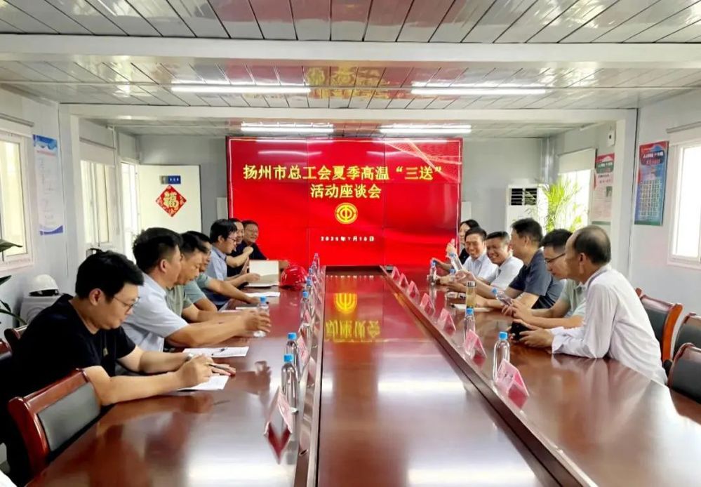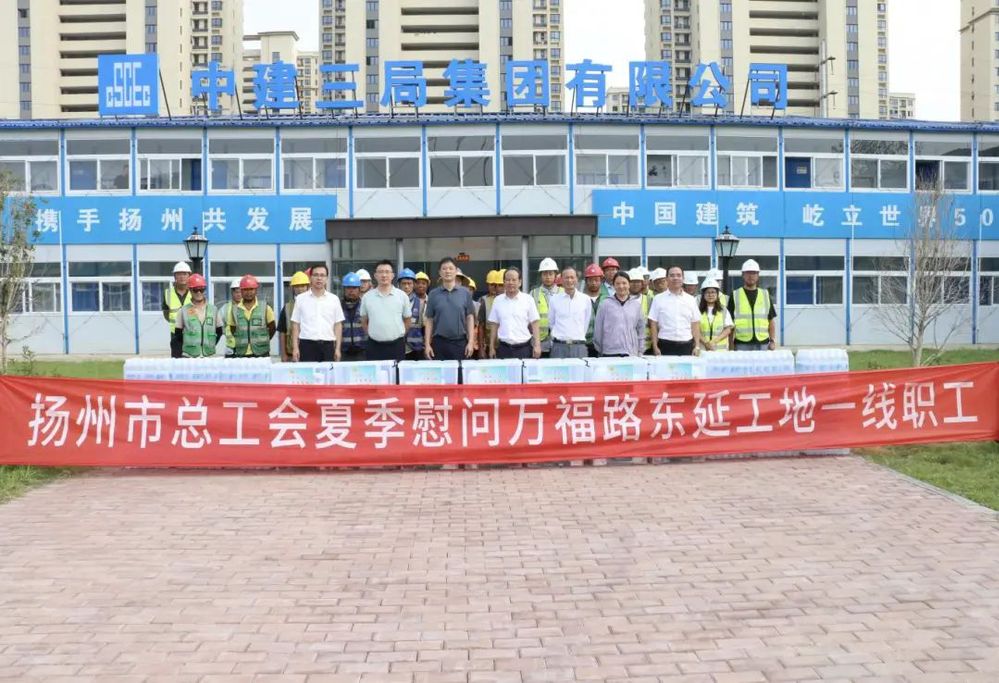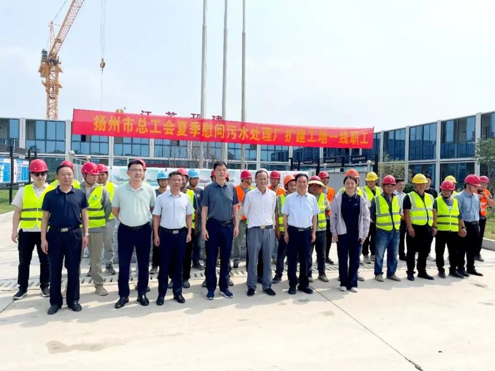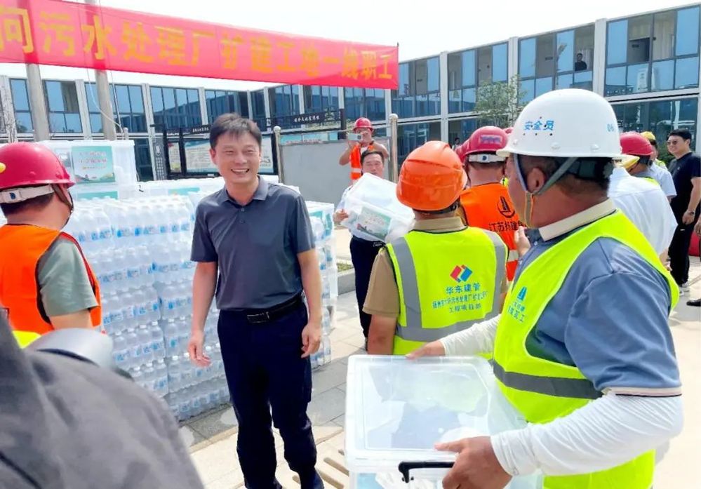 烈日炎炎,高溫來襲。為切實(shí)做好防暑降溫工作,保障一線人員身體健康權(quán)益,7月15日下午,揚(yáng)州市總工會(huì)副主席孫凌雷帶隊(duì)組成“送清涼”慰問組,來到六圩污水處理廠擴(kuò)建工程現(xiàn)場(chǎng),為奮戰(zhàn)在高溫一線的工作人員送去防暑物資與深切關(guān)懷,讓“清涼”沁潤心田。