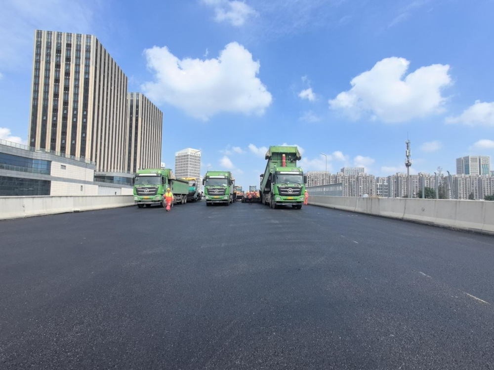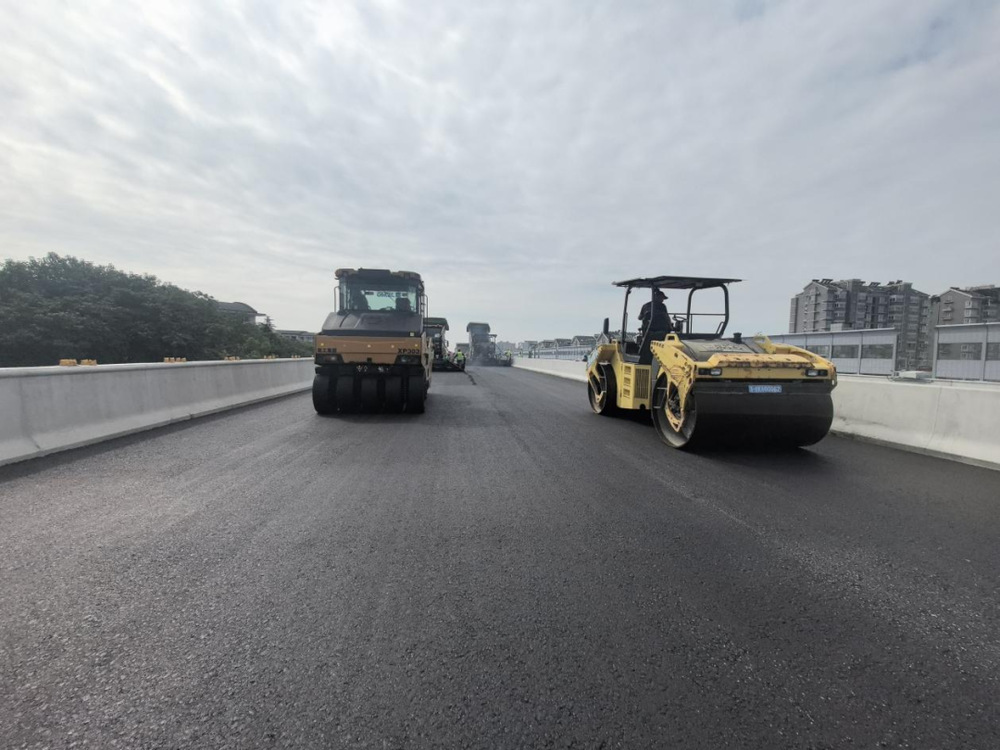 施工過程中,現(xiàn)場攤鋪機、壓路機等設備有序作業(yè),管理人員對原材料質(zhì)量、攤鋪溫度、厚度及平整度進行嚴格控制,確保各項施工符合各項規(guī)范要求,為后續(xù)橋面交通標志標線施劃、智能交通監(jiān)控設施及亮化設備安裝打下基礎。